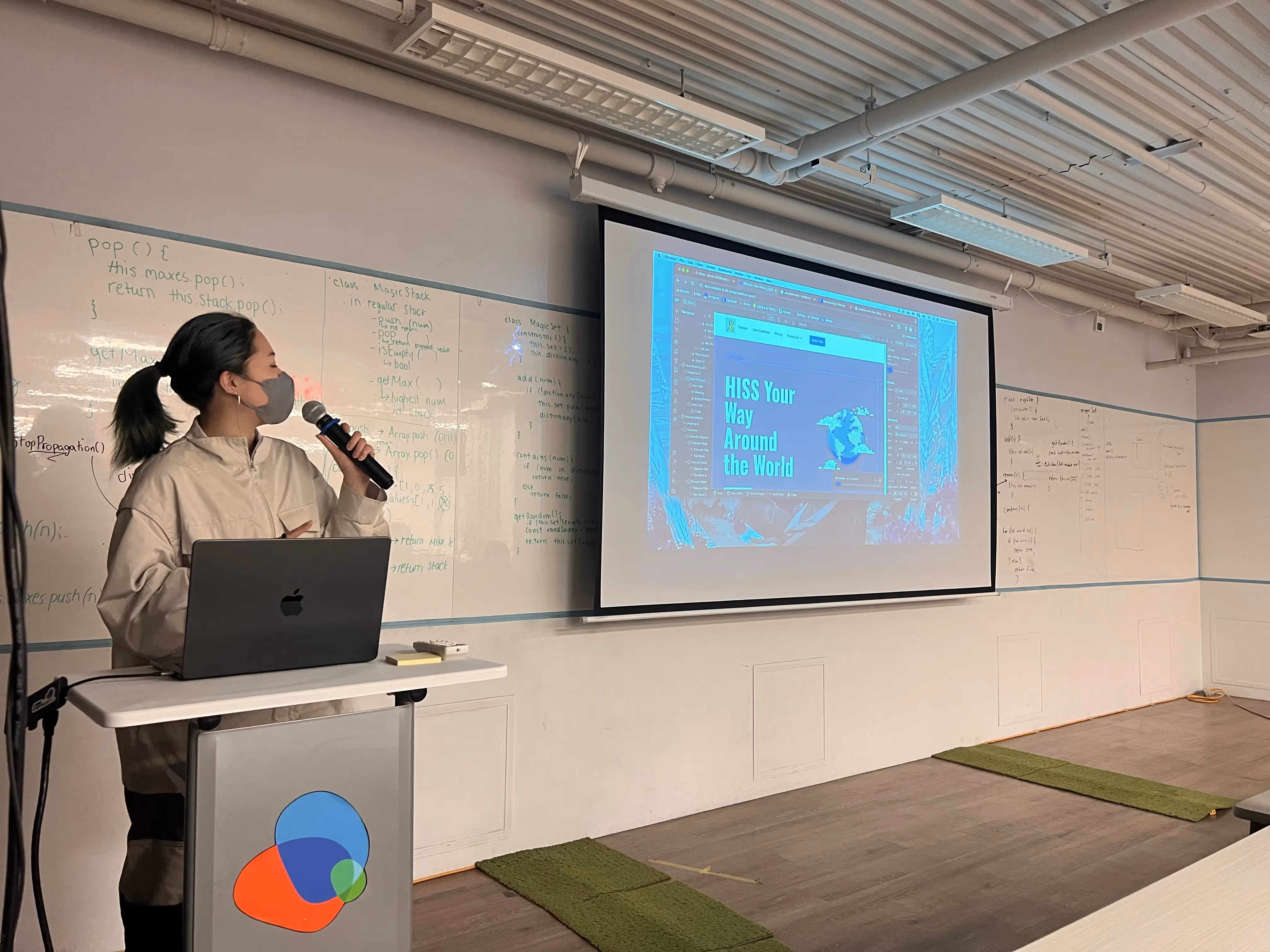その後ワークショップを行い、HTMLとCSSの基礎を学び、Webページがどのように構成され、コードがどのようにブラウザに表示されるのかを学生たちに学んでもらいました。また、HTMLとCSSのコードがWebflowの要素やスタイリングオプションとどのように関連しているかを、いくつかの例を用いて説明しました。