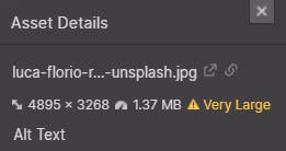 If an image used as an asset is too large, it will take a long time to load and slow down the website; Webflow will display a "Very Large" warning if the asset is too large, so replace it with a smaller image when you see it!