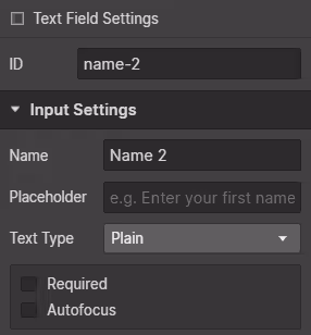 If you add more inputs to the form using the copy plague, the copied input name and ID will be added to the new input with a number, e.g., name-2.
