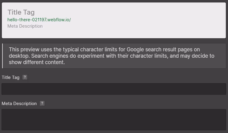 Webflow, thankfully, allows you to set the page title and description that will appear in the search results for each page. Don't forget to enter this information from the page settings!