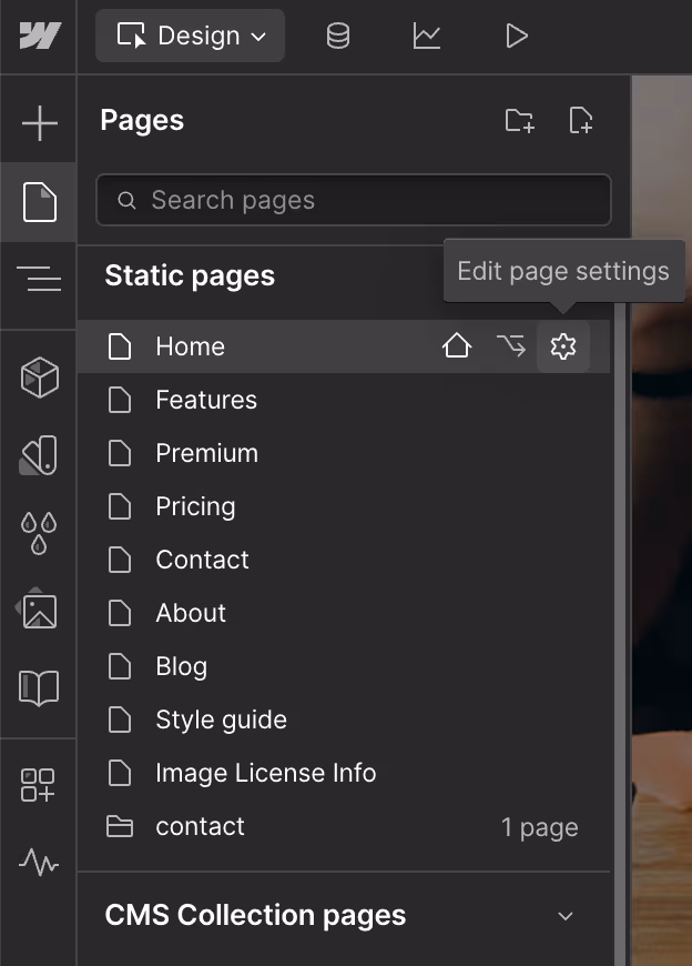 - From the left sidebar, click on "Pages" (it’s the fifth icon from the top, resembling a folded sheet).