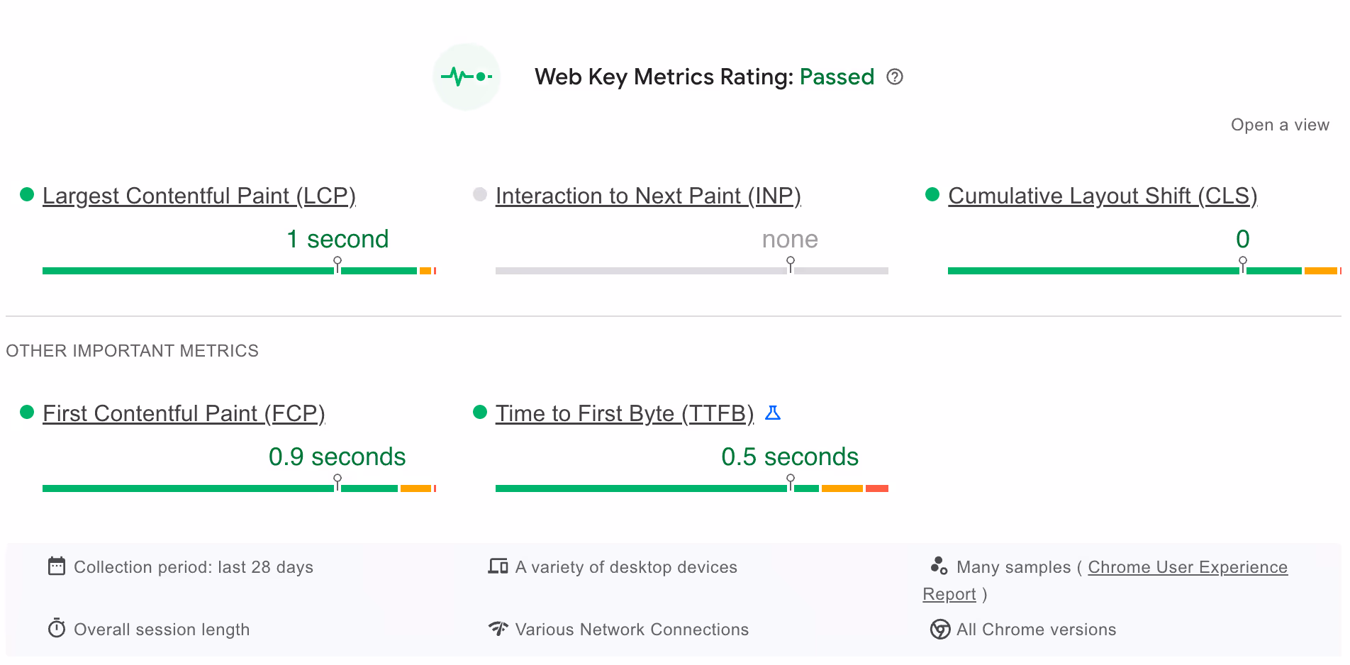 - Interaction to Next Paint (INP): Measures how well a site handles user interactions (ensuring that each click results in a fast response).