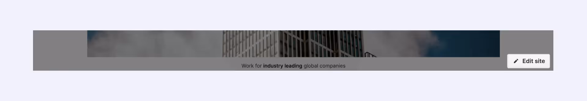Editorを開くと、プレビュー・モードまたは "ライブ・サイト "モードでサイトを探索することができます。Editorモードに切り替えるには、ページ右下の「Edit site」ボタンをクリックします。
