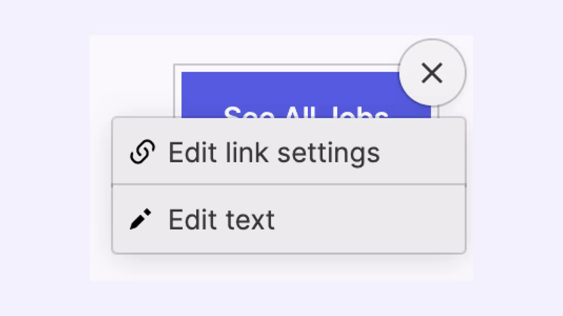 リンク設定の編集 - ボタンのリンクを更新できます。テキストを編集する - ボタンのテキストを変更できます。