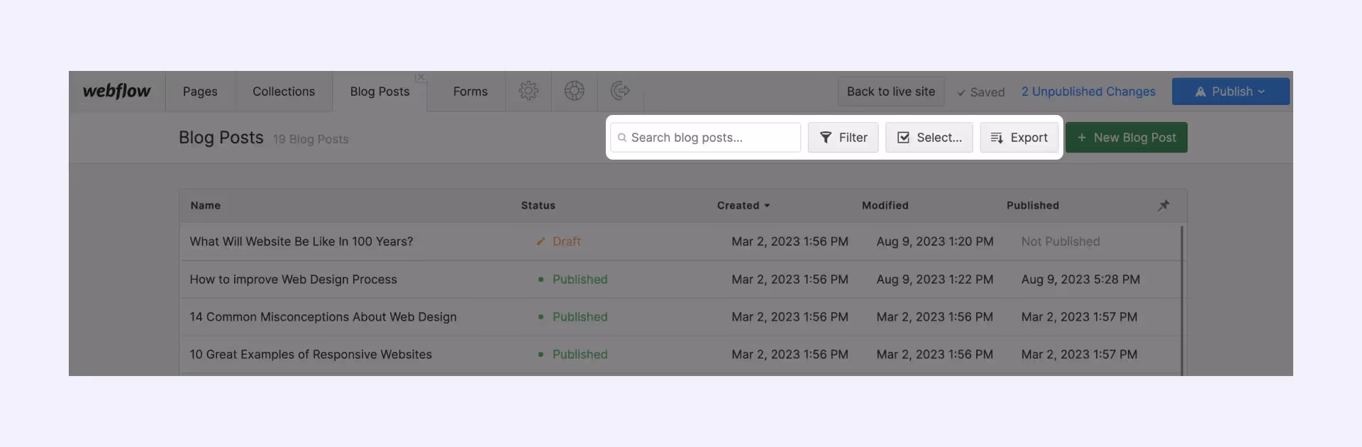 コンテンツの管理Collectionパネルでは、すべてのCollectionアイテムとそのステータスを確認できます。コンテンツの大規模なデータベースを扱う場合、Collectionアイテムの管理は、編集対象を決定する際の救世主となります。次の方法でこれを行うことができます: