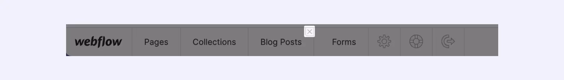 メニュー - このメニューを使用して、ダッシュボード、サイト設定、またはデザイナーに移動します。このボタンには Webflow のロゴが表示されます。