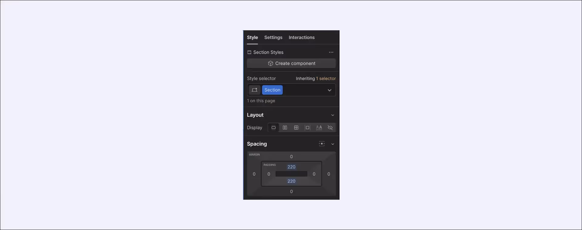 スタイルパネルでは、各要素の内側と外側のスペーシング(マージンとパディング)を定義できます。
