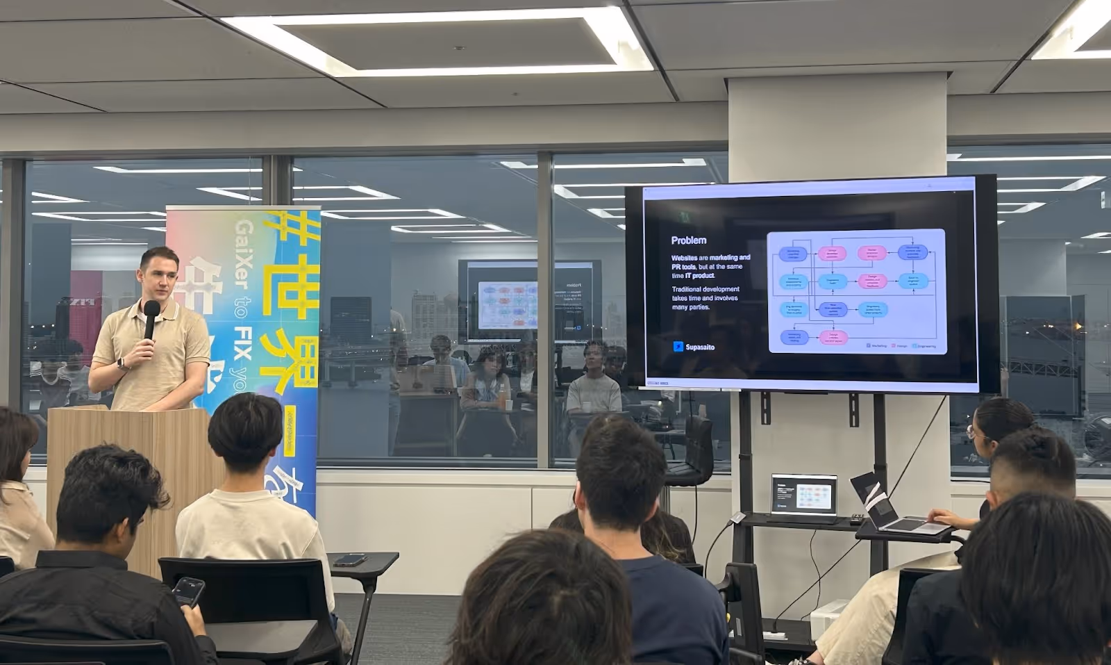 7月13日(土)、スーパーサイトは株式会社Fixerにて「AI + NoCode Networking」イベントを開催しました。このイベントはFox Academyとのコラボレーションにより実現し、トークセッションとネットワーキングの二部構成で行われました。AIやノーコード技術に興味を持つ学生、デザイナー、IT関連の社会人など、多くの方々が参加しました。