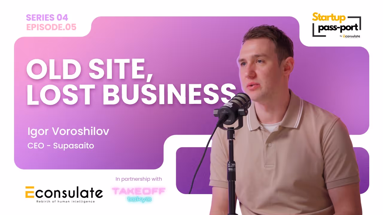 株式会社スーパーサイトのCEOであるイーゴリ・ヴォロシオフ氏が、EconsulateとTakeoff Tokyoが共同制作するポッドキャスト「Startup pass-port」にゲスト出演しました。番組内で同氏は、企業の規模を問わず、ウェブデザインの改善を通じて日本企業のオンラインプレゼンスを向上させることがSupasaitoのミッションであると語りました。特に、ビジネスを加速させるための「ノーコード」技術の戦略的な活用が重要であると強調しました。