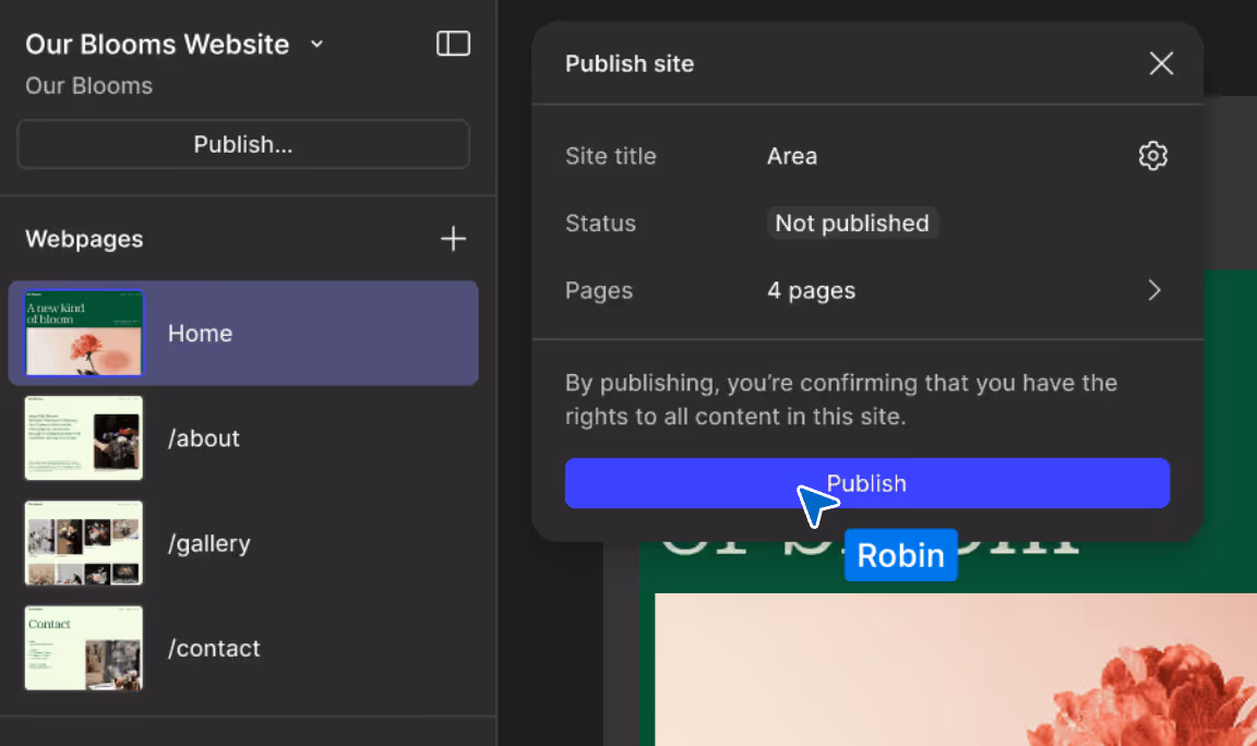 Figmaでデザインしたページを、そのままWebページとして公開可能です。コード不要で誰でも簡単にサイト制作ができます。