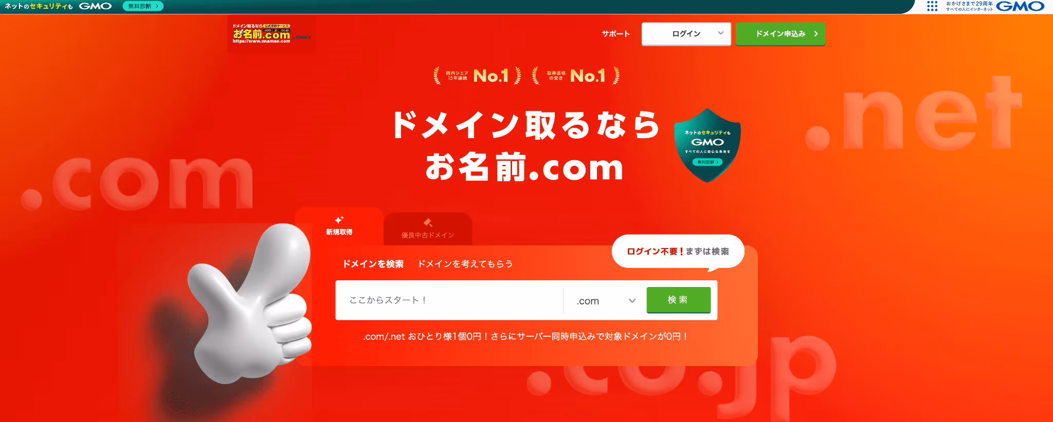 - 世界最大級のドメイン取得サービス