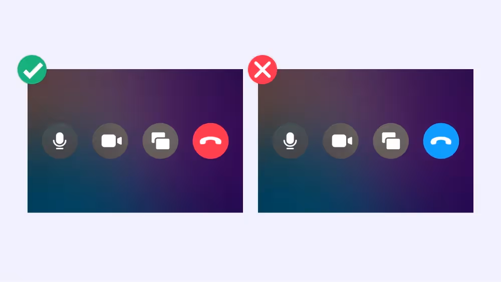 赤は一般的に「停止」や「終了」を表す色として広く認識されています。電話を切るアイコンに赤を使用することで、その操作が通話を終了することを視覚的に表しています。