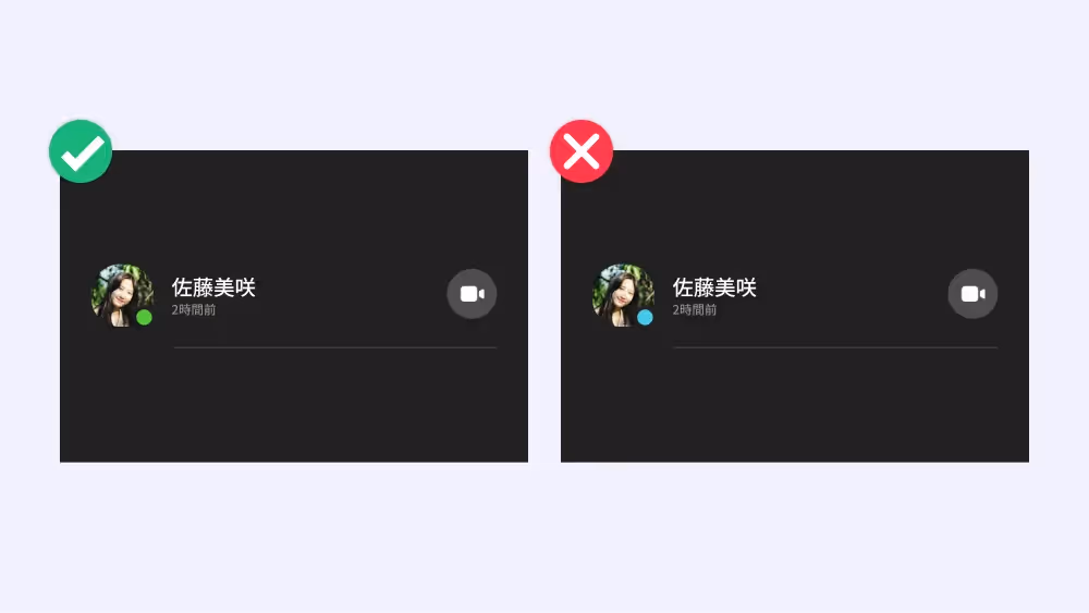 緑色はアクティブな印象を持つカラーです。現在そのユーザーがロフインしていることが想像できますね。