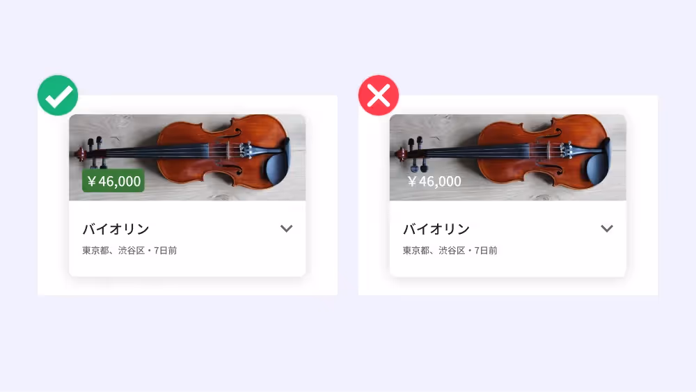 値段に背景色がないと、画像と被り読みにくくなりますね。はっきりと見せるために必ず背景色を付けましょう。